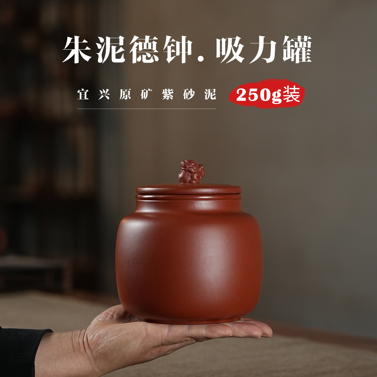 250g朱泥招财纳福吸力罐宜兴紫砂茶叶罐小号散茶密封储存罐防潮