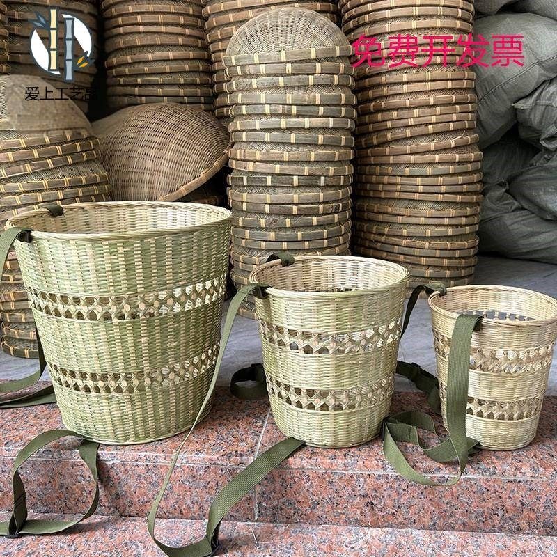 双肩竹编圆背篓茶叶采摘竹筐收纳水果篮古风儿童舞蹈演出道具箩筐