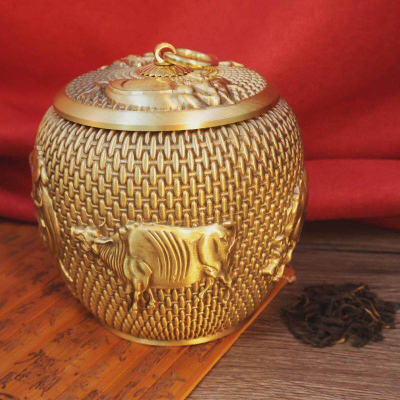 黄铜茶叶罐五牛茶叶罐福字茶叶罐铜带盖存茶罐家居办公室存储摆件