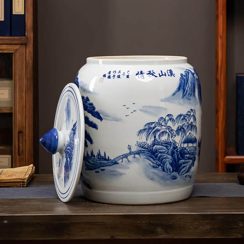 景德镇陶瓷米缸米桶家用30斤50装带盖子密封面粉水缸防潮储物茶叶