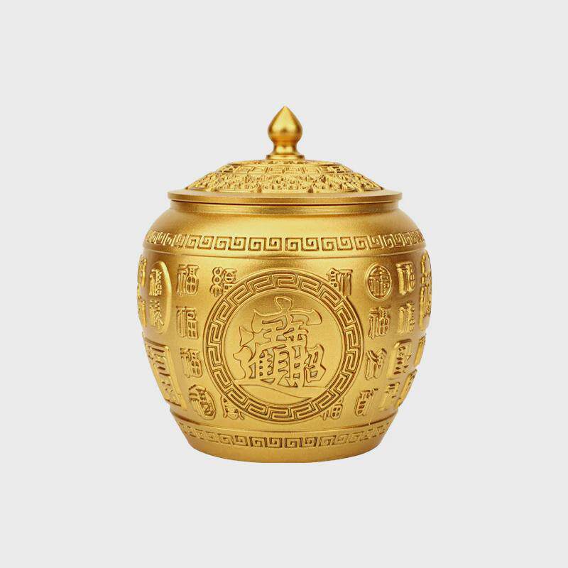 桌面百福茶叶罐带盖米缸办公室书房黄铜招米聚宝盆福字进宝罐子批