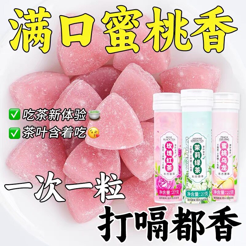 茶叶含片口气清新糖果接吻蜜桃乌龙茉莉绿茶玫瑰红茶去异味无蔗糖