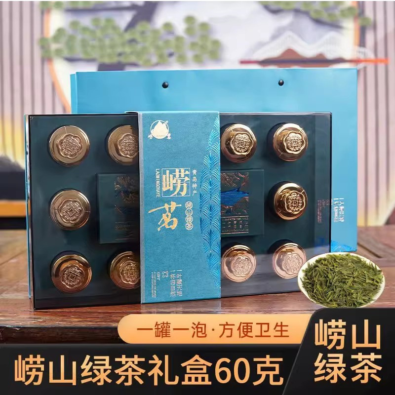 崂茗崂山绿茶礼盒装2025新茶豆香扁茶小罐装浓香型大田茶叶送礼品