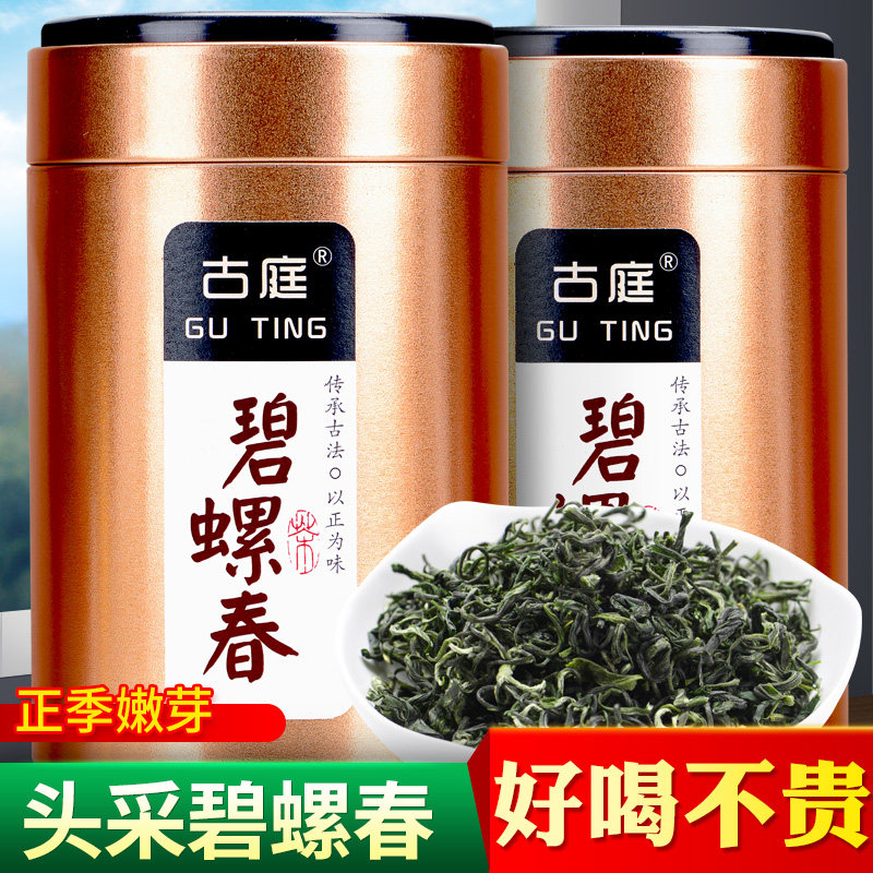 古庭碧螺春绿茶浓香春茶新茶叶味花果香嫩芽罐装礼盒散装100g