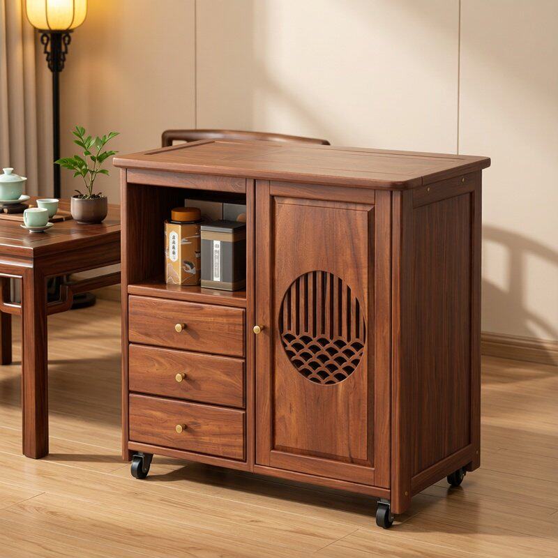 实木移动茶水柜中式茶几茶桌边柜带万向轮抽屉茶叶烧水储物置物架