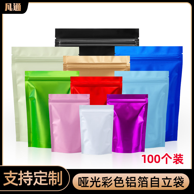 哑光彩色自立袋铝箔自封袋茶叶粉末化妆品镀铝封口食品包装袋定制