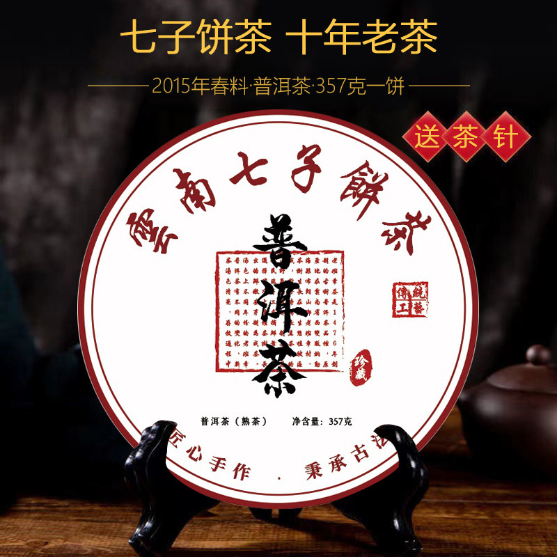 云南普洱茶官方旗舰店正品熟普七子饼茶叶陈香十年宫廷茶叶自己喝