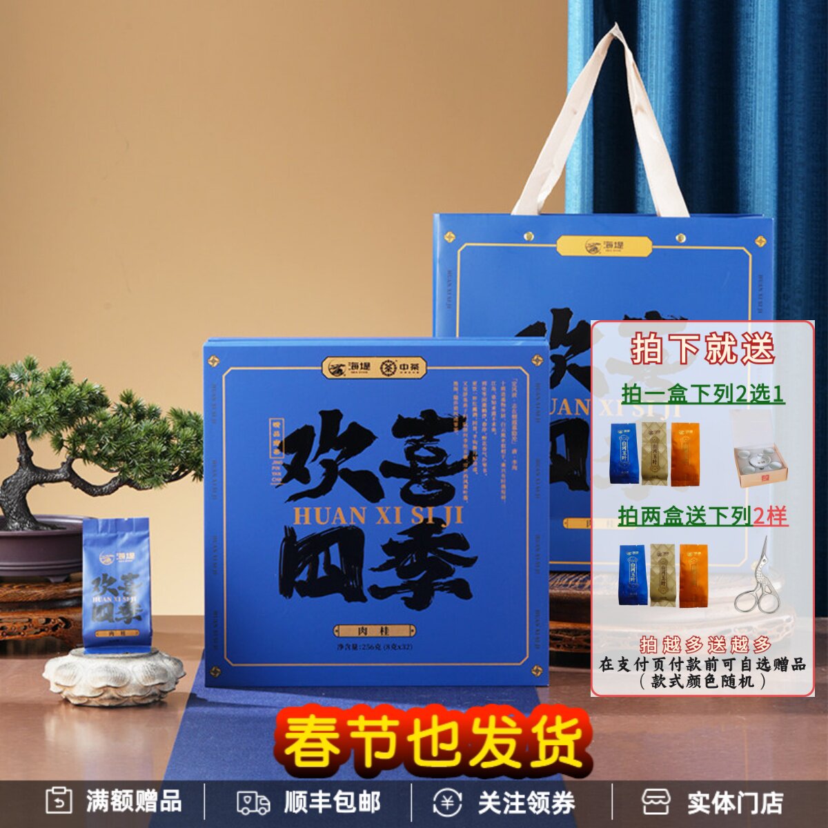 中茶敦煌国风武夷肉桂福建特级乌龙岩茶蓝色配礼盒礼袋