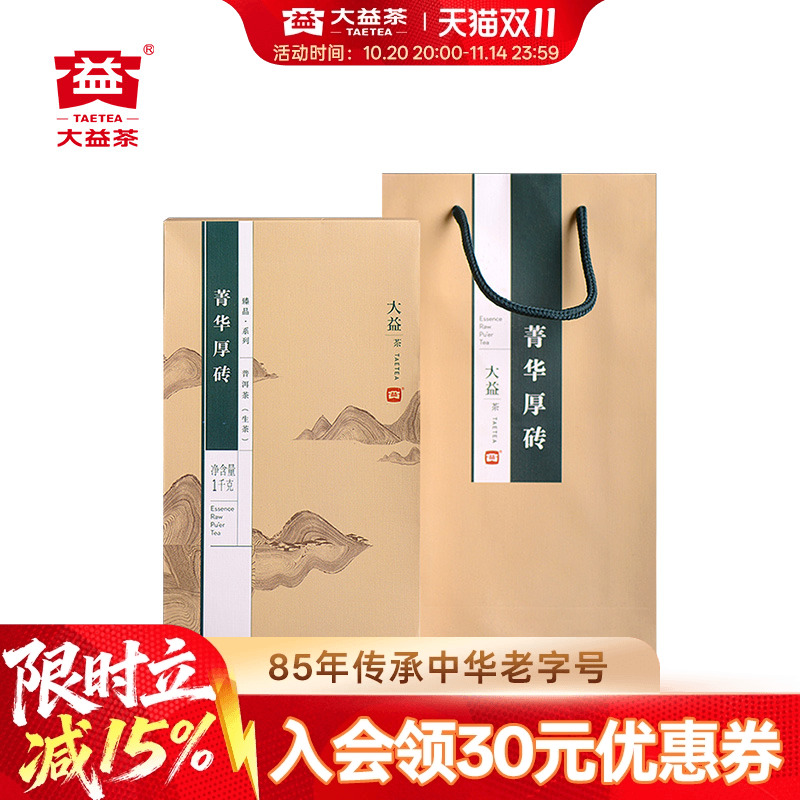 大益普洱茶生茶 菁华厚砖礼盒1000g青饼1301批次 正品官方旗舰店
