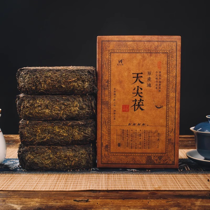 正宗湖南安化黑茶1000克天尖茯金花手筑茯砖茶黑茶砖口粮茶新品