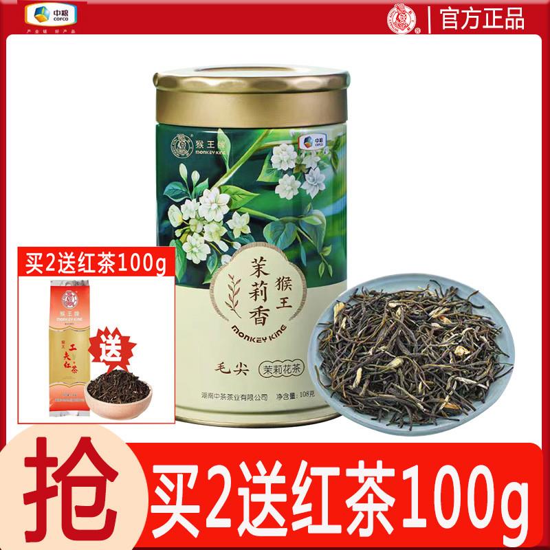 新货中粮猴王茉莉花茶特级浓香型茉莉香高端毛尖茶叶108g罐装桂花