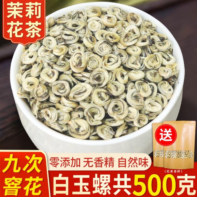 新货25年新茶九窨广西横县茉莉花茶白玉螺王正宗散茶叶 浓香型全
