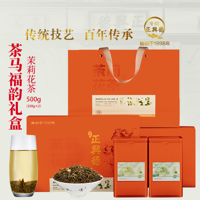 新货茶叶九窨莲花香雪特种茉莉花茶100g盒装配礼袋 中华