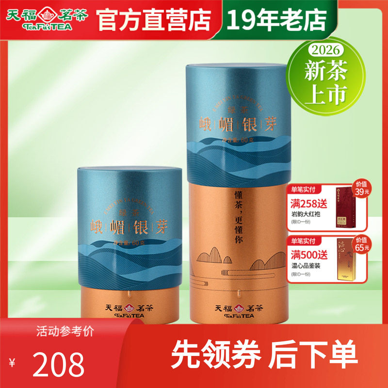 天福茗茶 2026高山特级绿茶 四川茶 峨嵋银芽茶叶60g*2罐装