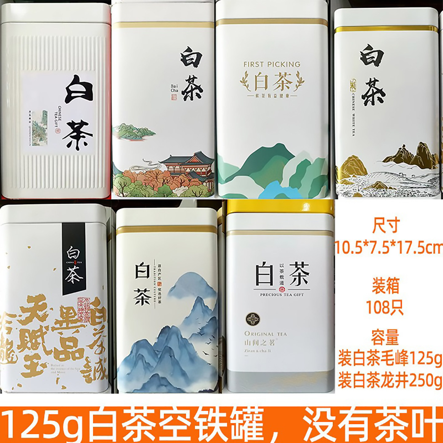 新品125g通用白茶铁罐子加高加高空罐茶叶罐空盒铁盒密封罐包装盒