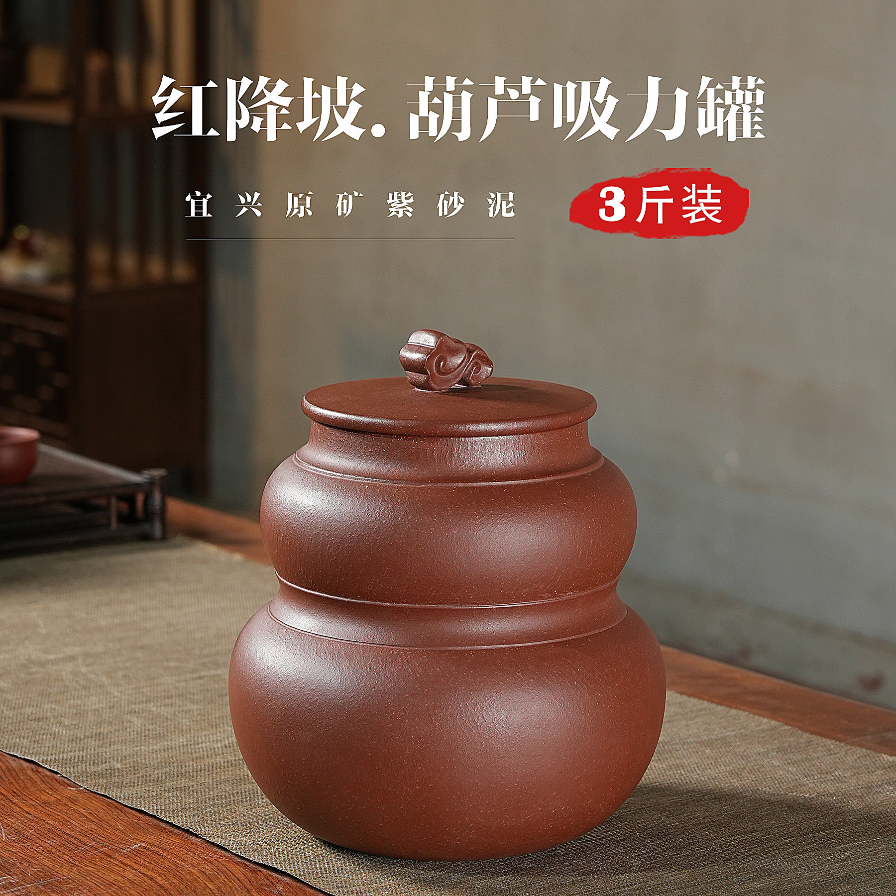 3斤红降坡葫芦吸力罐宜兴紫砂茶叶罐大号散茶储存罐密封原矿手工