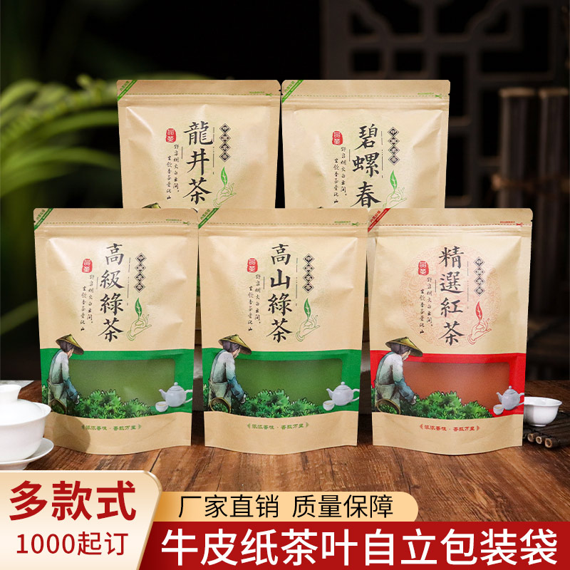 牛皮纸高山绿茶包装袋自封茶叶包装袋子红茶龙井碧螺春密封袋定制