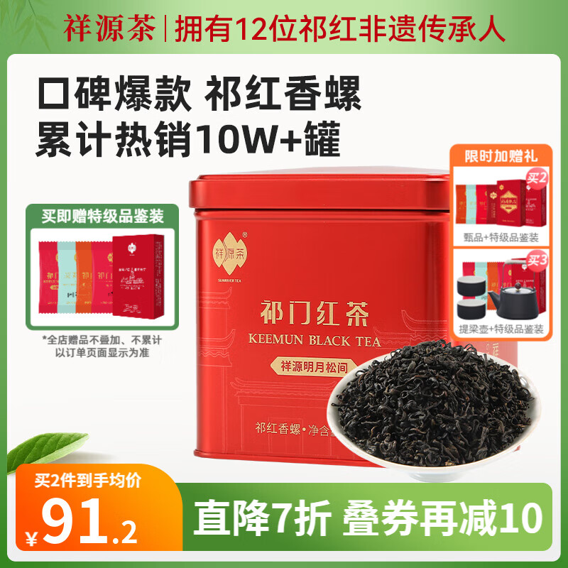 祥源茶 明月松间祁门红茶 特级正宗蜜香祁红香螺 2025新茶叶自己喝送礼 经典大红罐装150g