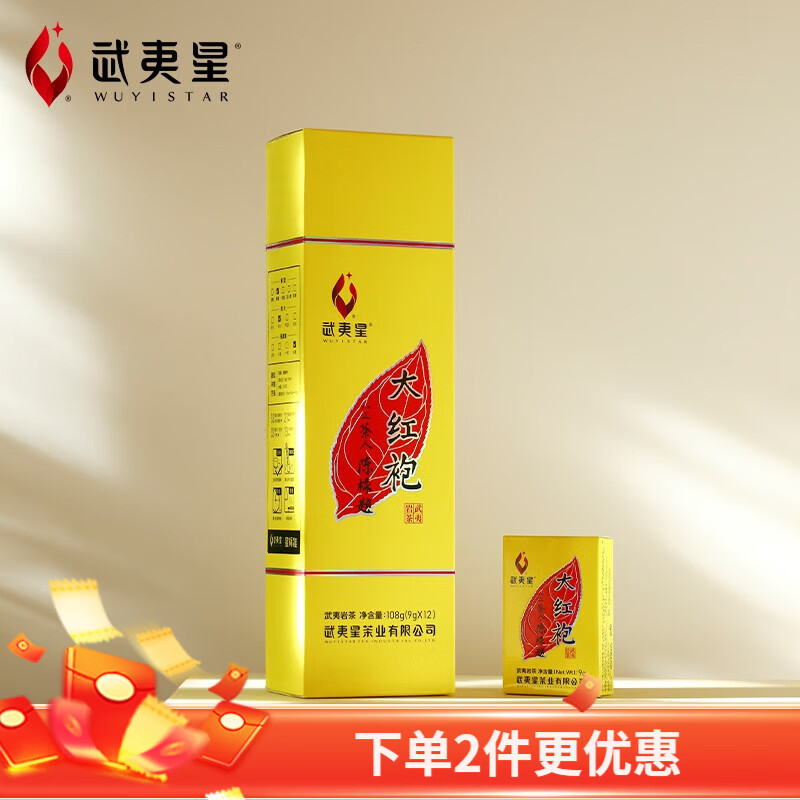 武夷星大红袍肉桂水仙茶叶武夷山岩茶传统足火香醇香自饮送礼108g黄条 大红袍9g*12盒