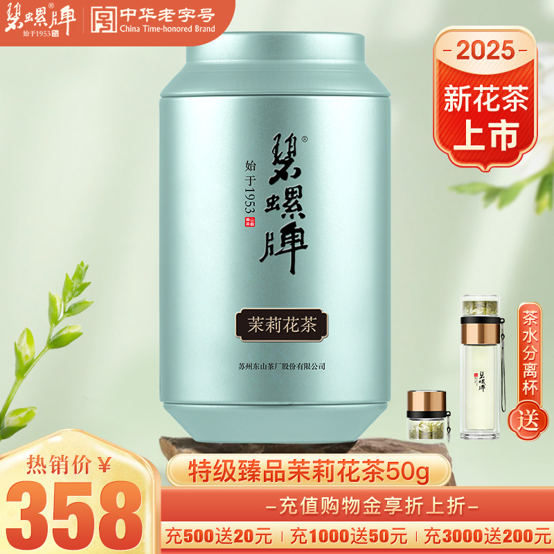 碧螺洞庭九窨碧螺春茉莉花茶叶东山茶厂特级臻品茉莉花茶浓香50g