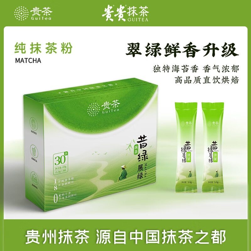 贵州贵茶昔绿展绿抹茶粉浓郁茶香直饮冲饮奶茶拿铁烘焙便携装