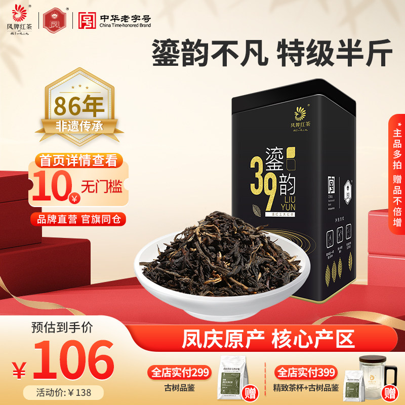 凤牌红茶正宗滇红茶特级云南特级茶叶39鎏韵凤庆原产250g半斤