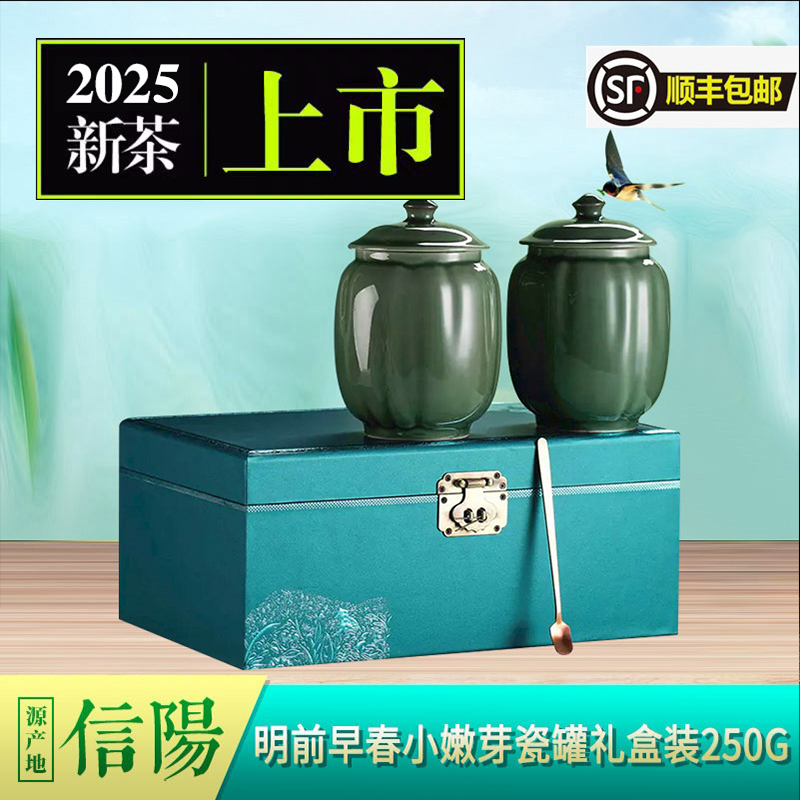 世明信阳毛尖瓷罐礼盒装2025新茶叶明前特级头采嫩芽250g