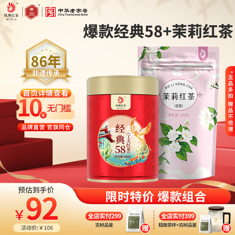 【爆款组合】凤牌红茶正宗滇红经典58+茉莉花香红茶云南凤庆茶叶