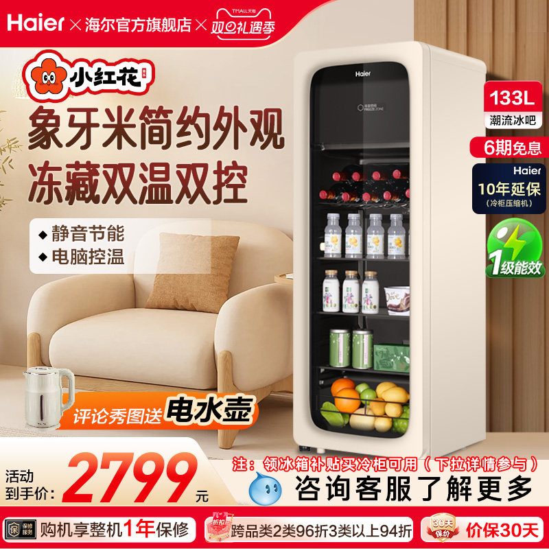 海尔小红花套系133升元气冰吧小型冷藏保鲜家用茶叶饮料柜冰箱