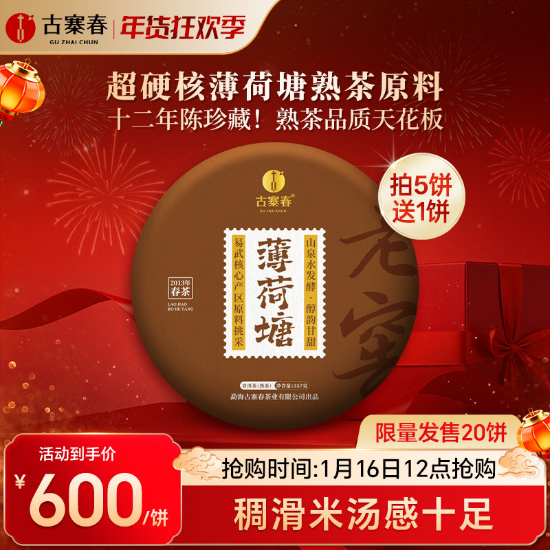 新品【老窖-薄荷塘熟茶】2013年春料发酵高端熟普云南易武357g饼