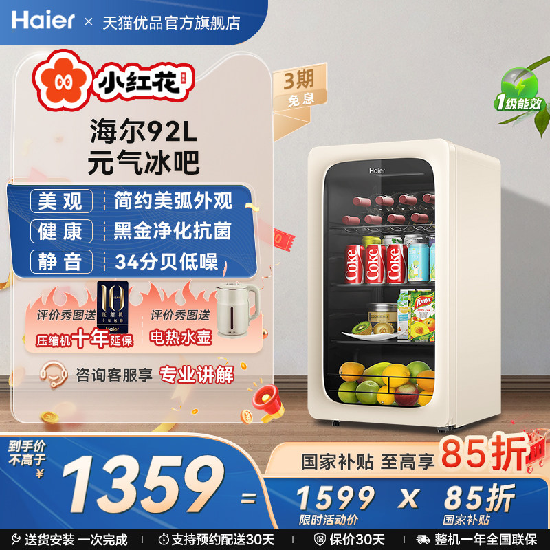 海尔92升元气吧家用客厅时尚冰吧茶叶饮料柜冷藏办公室保鲜小冰箱