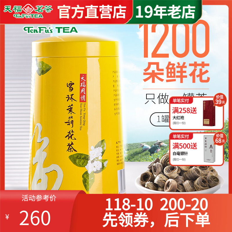天福茗茶 雪环茉莉 广西横县茉莉花茶女儿环 茶叶手工100克花茶