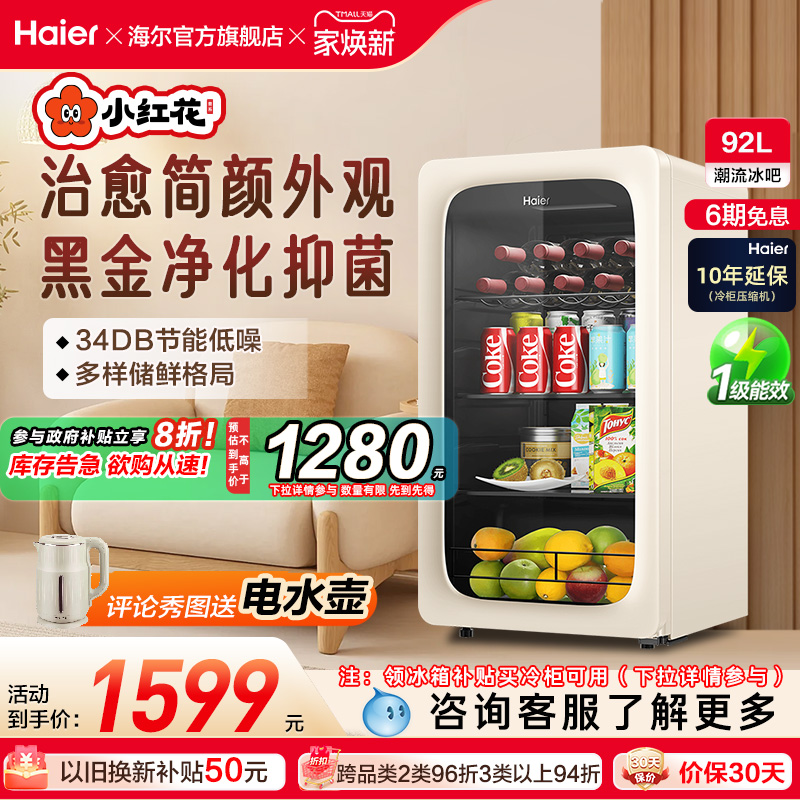 海尔小红花套系150升元气冰吧小型冷藏保鲜家用茶叶饮料柜冰箱