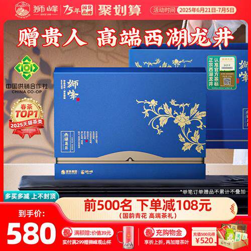 2025新茶狮峰牌西湖龙井茶叶礼盒装明前特级青花绿茶200g送礼长辈