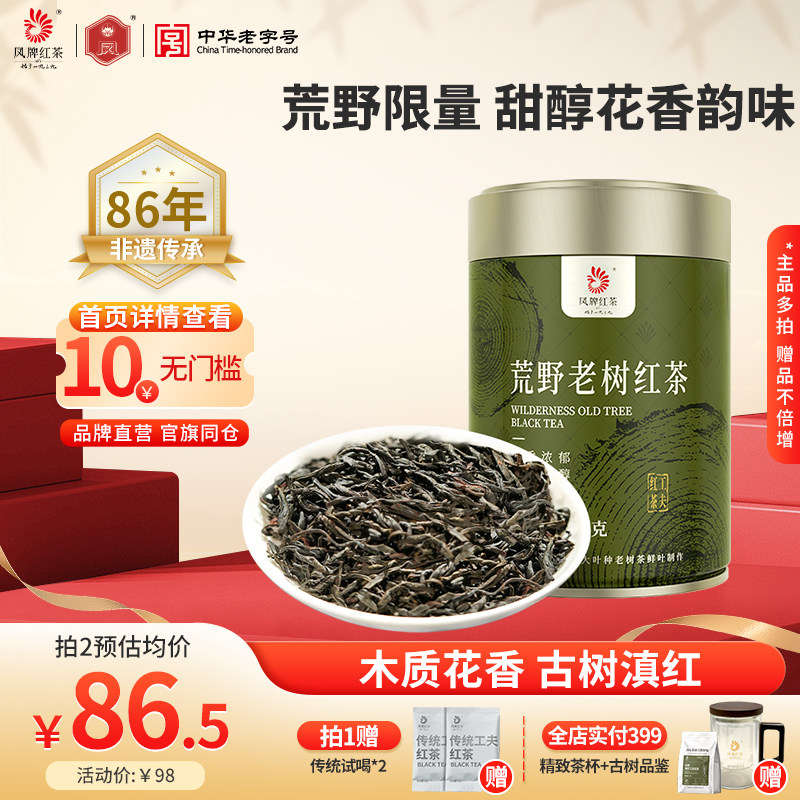 【新品】凤牌红茶云南滇红高山荒野老树100g甜醇花香特级散装茶叶