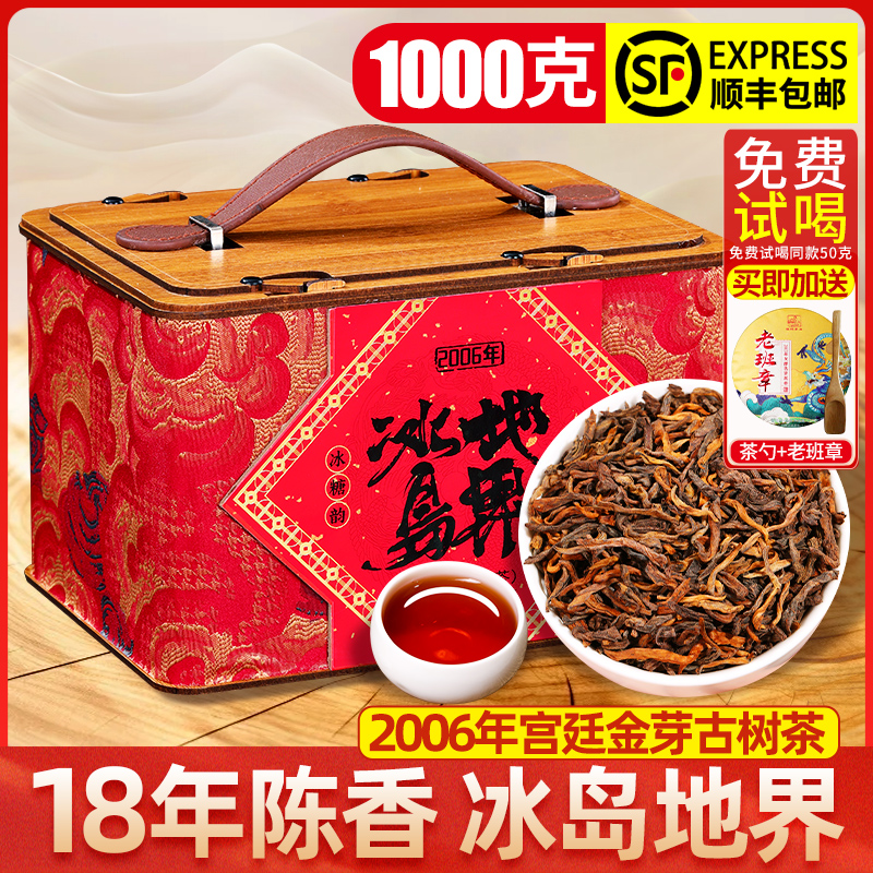 冰岛地界普洱茶熟茶十年以上陈年古树宫廷金芽自己喝散茶叶礼盒装