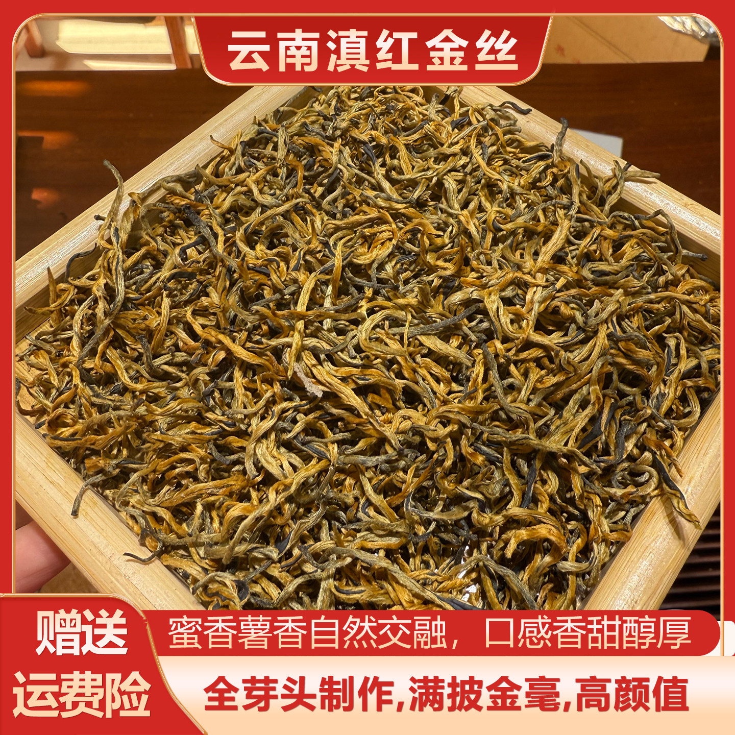 【滇红金丝】云南凤庆老树滇红茶特级小金丝25年春茶全芽蜜香花香
