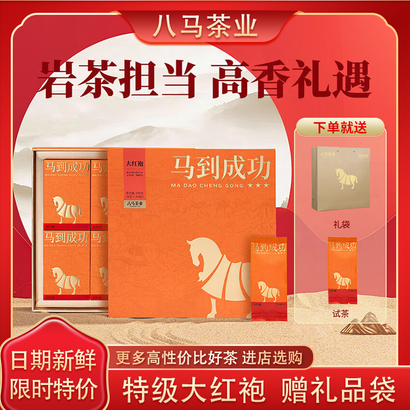 八马茶业大红袍特级武夷乌龙茶马到成功岩茶礼盒装自己喝茶叶240g