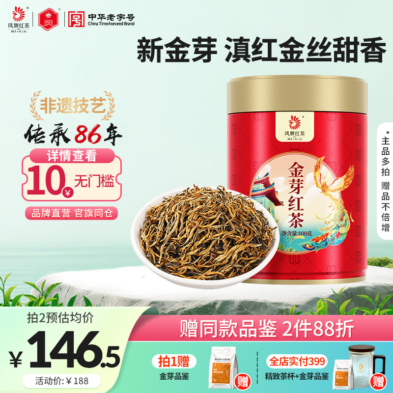 凤牌红茶金丝滇红茶蜜香金芽茶特级浓香云南凤庆茶叶送礼100g散装