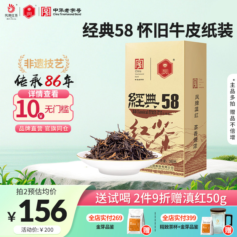 凤牌经典58滇红茶云南凤庆正宗滇红茶特级浓香型工夫红茶罐装茶叶