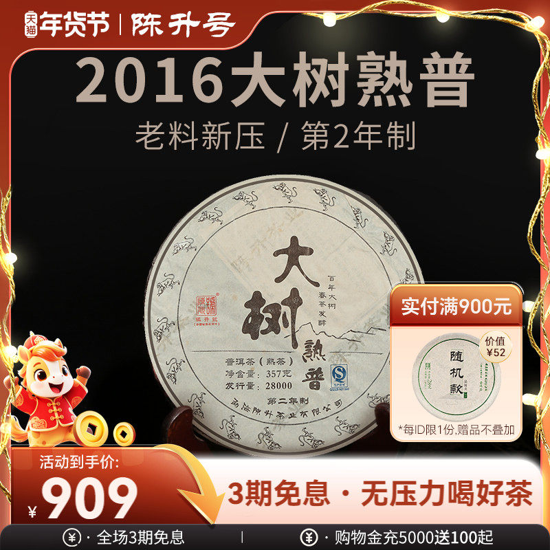 2016年陈升号大树熟普357g 普洱茶熟茶茶饼茶叶普洱云南七子饼茶