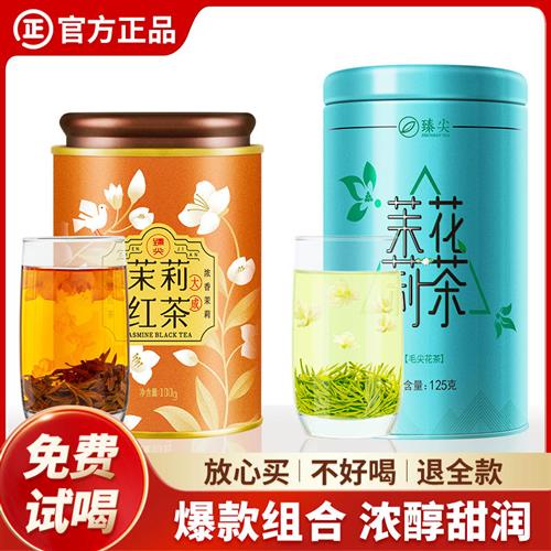 茉莉花茶+茉莉红茶品质组合装特级浓香型新茶茶叶官方旗舰店正品