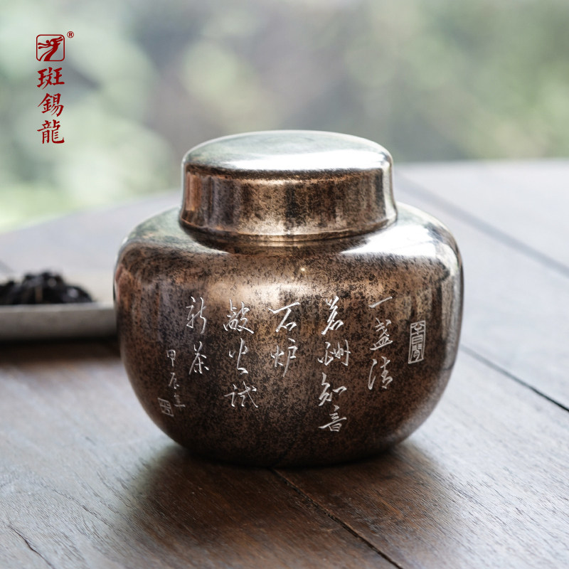 斑锡龙大漆锡罐小号便携纯锡茶叶罐枣趣茶仓密封存茶罐外出旅行装