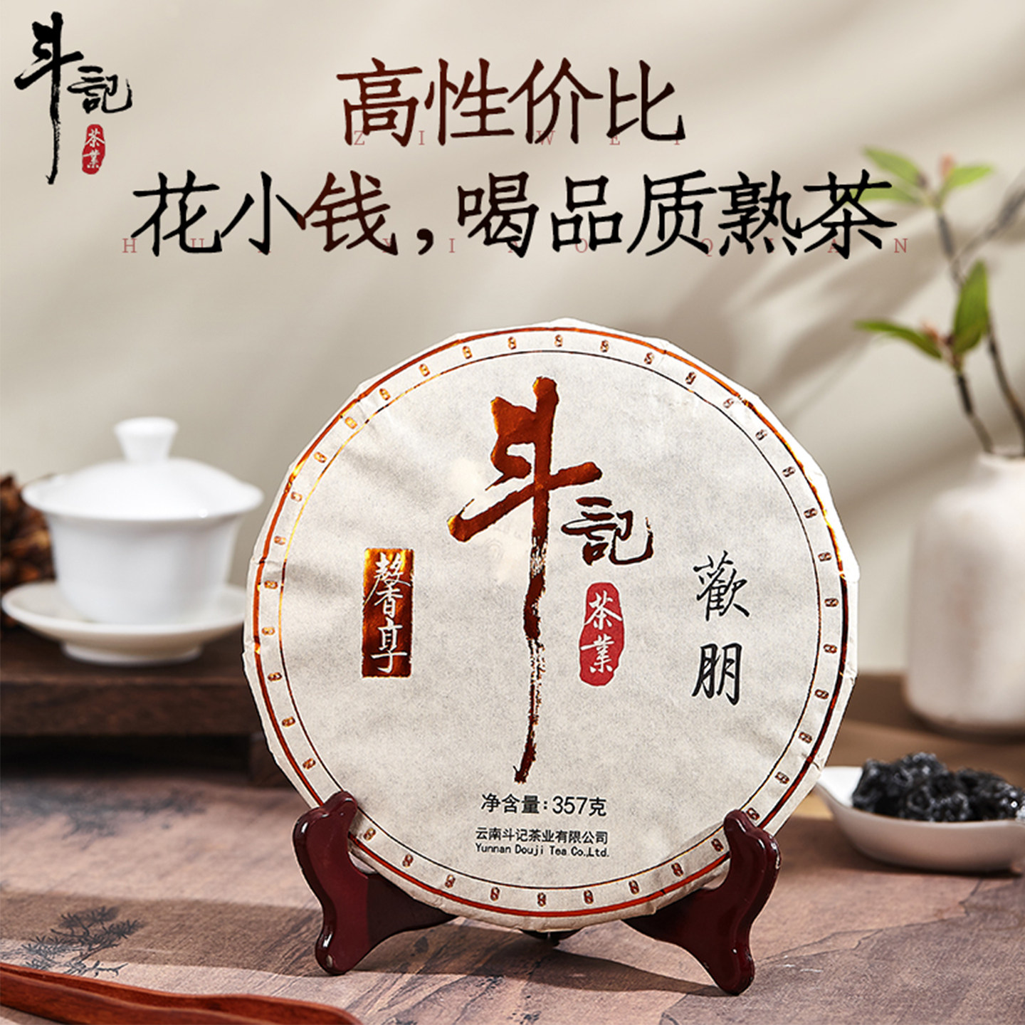 斗记茶叶云南普洱2501和古今熟普饼茶357g甜香七子饼熟茶年货送礼