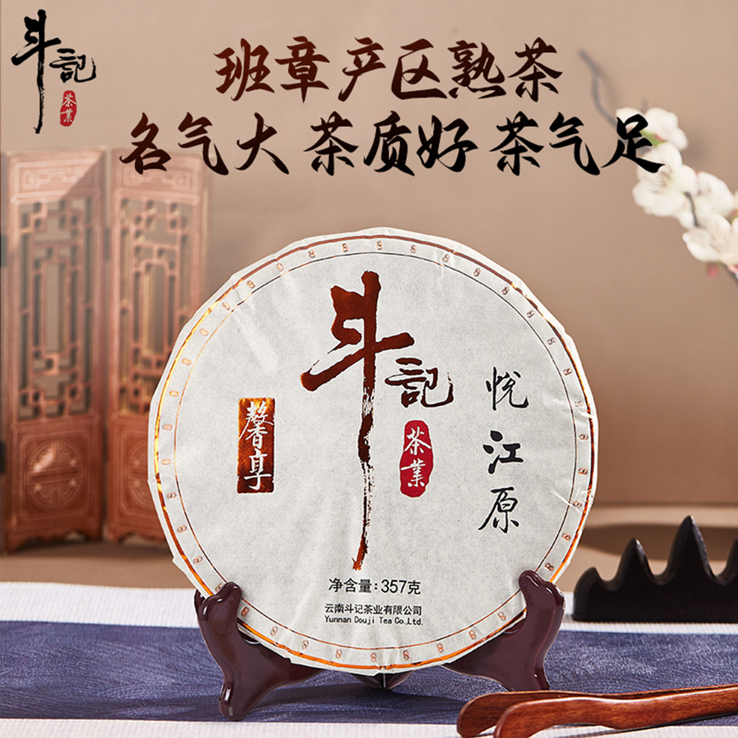 斗记普洱茶2501悦江原饼茶357g熟普 班章春茶汇聚6年陈料云南茶叶