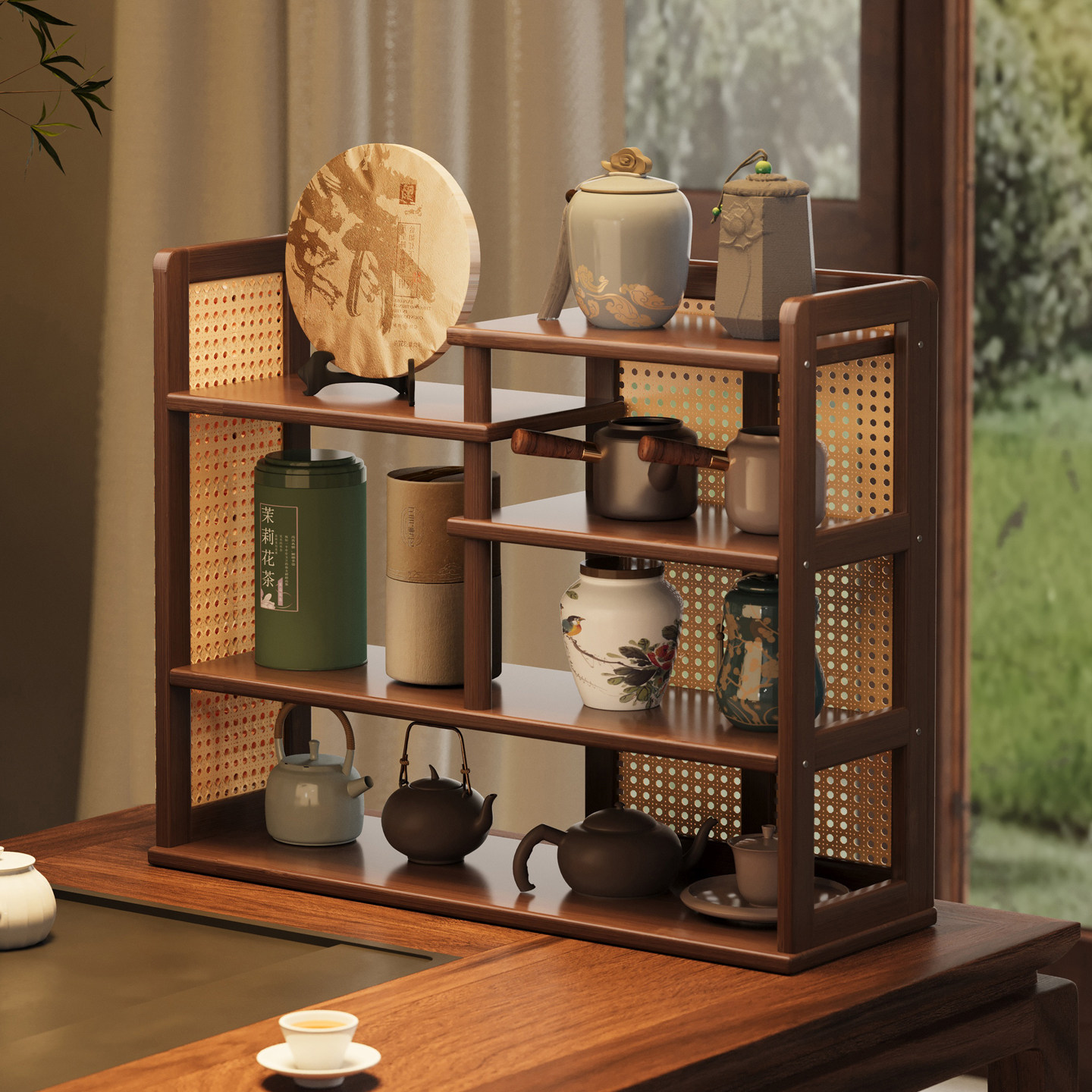 桌面博古架实木新中式茶桌台式茶具置物架茶室茶叶架子摆放架小型