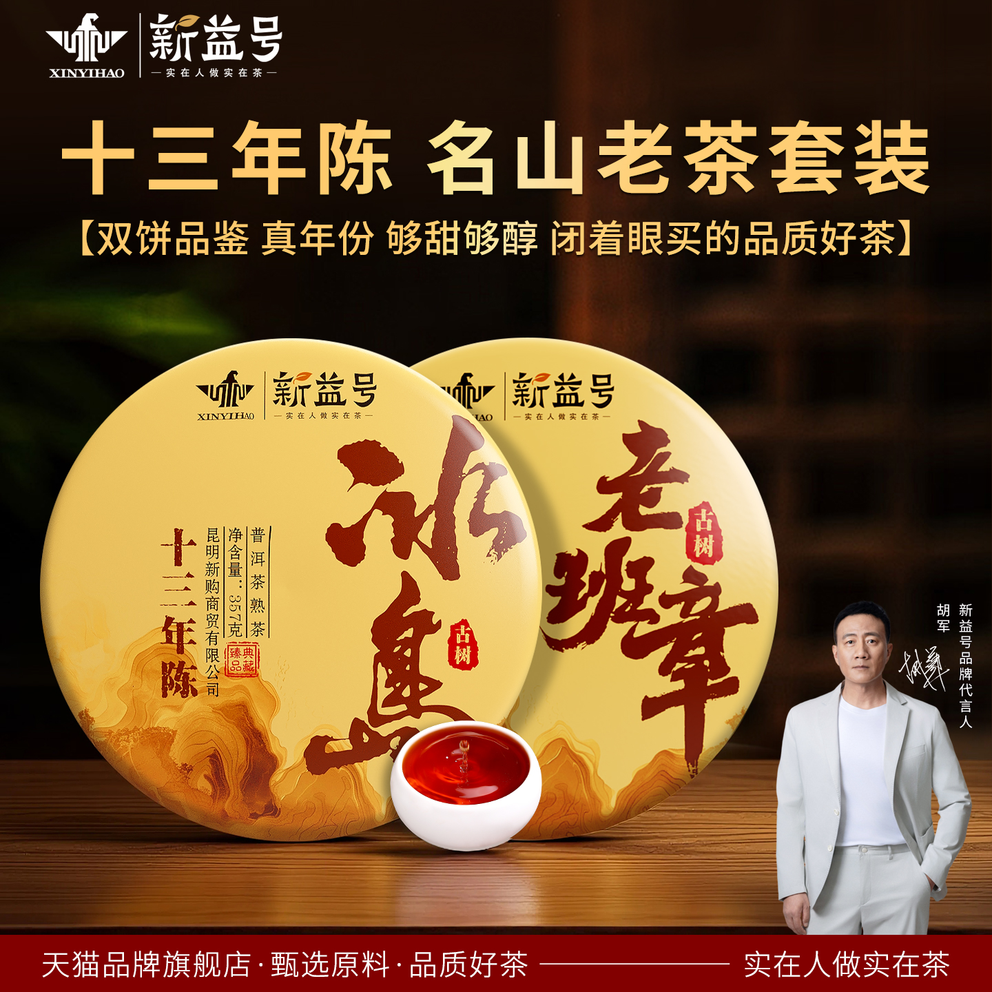 新益号普洱茶熟茶十年以上冰岛老班章古树熟茶云南七子饼茶叶送礼