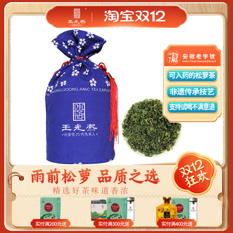 【非遗制茶】2025王光熙松萝茶非遗明前特三级250g罐蓝花布袋装
