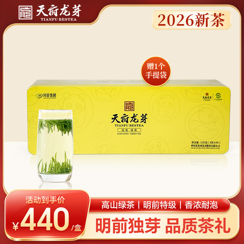 2026年新茶天府龙芽冠龙绿茶明前特级雀舌高山茶叶礼盒装120g送礼