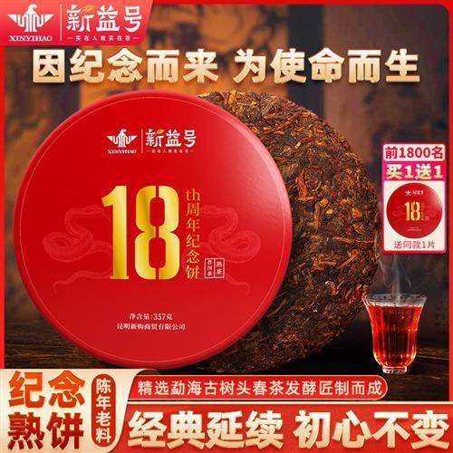 买1送1新益号18周年纪念饼熟茶云南七子饼茶叶古树普洱茶熟茶饼